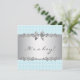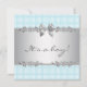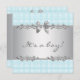 Gris plateado con invitación a la ducha de un niño pequeño, azul y blanco, de fondo a cuadros.