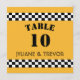 Personalizar este número de tabla de estilo de taxi vintage para su celebración. Tiene todos los detalles del clásico taxi de la ciudad de Nueva York: amarillo brillante con texto en arco, letras estampadas y rayas de tablero de ajedrez. Estilo clásico retro nostálgico para su boda o fiesta con temática vintage.