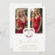 Cherish Romantic Floral Heart Initials Graduate 2 Photos Invitation Card.