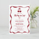 Celebrate your little “cherry on top” with this adorable baby shower invitation featuring playful cherry accents, and a charming bow detail. The whimsical yet elegant design is perfect for a sweet, feminine gathering that feels both modern and nostalgic. Ideal for dessert-themed showers or berry-inspired celebrations.