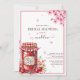 Celebra a la futura novia con esta encantadora invitación a la ducha de novia "Jam Packed with Love". Con un frasco de mermelada de cerezo, una cubierta roja y blanca de gingham, y delicados cerezos en flor que son simplemente encantadores. Vea la coordinación de artículos en nuestra tienda, Enchanted Finch.