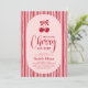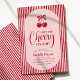 Dulce, elegante y un poco descarada: esta invitación de baby shower con tema de cereza es la forma perfecta de celebrar la próxima llegada. Con rayas rojas juguetonas, tonos de rosa suave y encantador arte de cereza dibujado a mano, este diseño establece el tono para una celebración divertida y femenina.