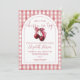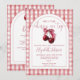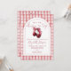 This stylish baby shower invitation, featuring a cherries and bow, elegant script typography and arch on a gingham background, can be personalized with all your special baby shower details and registry QR Code on the back. Designed by Thisisnotme©