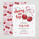 Invitación Cherry On Top Coquette Bow Chica Rosa Baby Shower