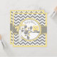 Oho amarillo dulce encaramado en la rama de roble de bellota y arco de aspecto 3D y cinta adhesiva para una tarjeta de invitación a la ducha chica. Los colores son amarillo y gris.
