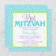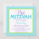 Patrón moderno de chevron invitaciones Bat Mitzvah. Con un verde azulado patrón de chevron azul y blanco con acentos de color violeta y verde lima. ¡Diseño jocoso y precoz!