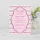 La invitación a la fiesta de 50 años de la mujer de moda incluye un patrón de Chevron en rosa y blanco alternando la impresión de un purpurina rosa para darle un toque elegante y encantador. El texto está listo para que usted pueda personalizar con la información de su fiesta. La tarjeta de vuelta tiene un diseño similar.