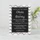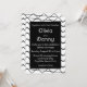 Chevron Stripe Black and White Wedding Invitation diseñada por Nisha Prabhu. Personalizable completo. Personaliza tus datos. La Invitación de Chevron Stripe Black and White Wedding es una elección elegante y moderna para las parejas que quieren hacer una declaración audaz con sus invitaciones a la boda. La invitación presenta un llamativo patrón de rayas de chevron en blanco y negro, creando un diseño visual dinámico y contemporáneo. El patrón de rayas de chevron añade un sentido de movimiento y energía a la invitación, mientras que el esquema de color blanco y negro exuda elegancia y sofisticación. Esta combinación crea un contraste visualmente sorprendente que atrae a los clientes. La invitación se puede personalizar con los nombres de la pareja, la fecha, hora y ubicación del boda. El texto se muestra en un tipo de letra limpio y minimalista, mejorando aún más la estética moderna del diseño. Ya sea que planee una aventura con corbata negra o simplemente le guste la osadía del blanco y negro, la invitación a la boda blanca y negra de la franja de Chevron es una elección perfecta para marcar el tono de su día especial con su diseño contemporáneo y elegante.