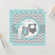 Dulce puentes con corbata y corbata en la tela y arco con aspecto 3D y cinta para dos niños gemelos con tarjeta de invitación a la ducha de bebé. Los colores son aquagüas y grises.