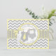 Moda de color gris y blanco con contraste amarillo y un tierno polka punto con corbata y corbata y arco de aspecto 3D y cinta para dos niños gemelos con tarjeta de invitación a la ducha de bebé.
