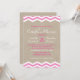 Chevrons rosa y blanco brillante con un acento de fondo burlap ilustrado esta invitación a la ducha. La invitación de boda de coordinación y RSVP están disponibles; sin embargo, si se necesitan artículos adicionales para su boda, simplemente contacte con nosotros en prettyfancyinvites@gmail.com con su solicitud.