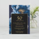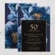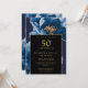 Invitación Chic Azul Floral Negro Y Dorado 50 Aniversario
