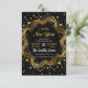 Ring in the new year with style! This sophisticated New Year’s Eve invitation features a luxurious black background framed by vibrant, swirling gold glitter waves. Accented with shimmering gold stars and festive confetti, this design perfectly captures the excitement of a midnight celebration. his template is fully customizable, making it ideal for house parties, cocktail hours, or formal black-tie galas.