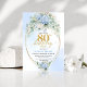 Invitación Chic Blue Floral Eucalyptus 80th Birthday Invite