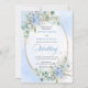 Invitación Chic Blue Floral Eucalyptus Gold Oval Wedding