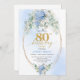Invitación Chic Blue Hydrangeas Gold Floral 80th Birthday