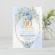 Invitación Chic Boho Blue Hydrangea Floral Gold 90th Birthday