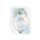Celebrate a remarkable milestone with this 80th birthday invitation featuring one of today’s most trendy and elegant color combinations: blue and gold. Designed with soft watercolor blue hydrangeas, fresh eucalyptus greenery, and refined gold floral accents, this invitation brings a sense of calm sophistication and joyful celebration to an unforgettable occasion.