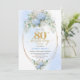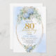 Invitación Chic Dusty Blue Floral Gold 80th Birthday Invite