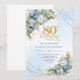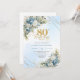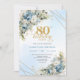 Invitación Chic Dusty Blue Floral Gold 80th Birthday Invites