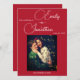 Invitación Chic Editorial Deep Red One Photo Wedding