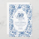 Make this milestone celebration unforgettable with a 50th birthday invitation featuring classic French toile de jouy roses in elegant shades of navy blue, royal blue, dusty blue, and deep blue. This refined floral design blends timeless European charm with modern sophistication, creating a truly classy invitation worthy of a 50th birthday celebration.