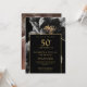 Invitación Chic Floral Negro y Dorado Foto de Aniversario 50