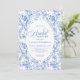 Invitación Chic French Toile de Jouy Blue Roses Bridal Shower