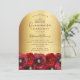 Invitación Chic Gold Crown Red Rose Floral Quinceañera