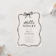 Make your birthday celebration one to remember with our stylish and modern 'Hello Ninety' Birthday Invitation. Featuring a dreamy cream background adorned with a playful black doodle frame and bow, this invitation also includes an elegant party template that can be tailored to your liking. Get ready to impress your guests with this customizable and chic invitation.
