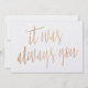 Tarjeta simple y bonita de estilo caligráfico "Siempre fuiste tú" para el día de la boda de la novia al novio o del novio a la novia.