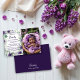 Elegant Purple Garland Flowers on a White Background – Baby Christening Invitation Cards with Photo.