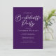This elegant royal purple bachelorette party invitation features customized white typography for a bride who is going to have an evening event with her bridesmaids. A chic, minimalist bachelorette party invite.
