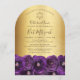 Invitación Chic Purple Rose Floral Gold Bat Mitzvah