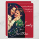 Artistic Split Layout: The front features a unique composition where your favorite engagement photo seamlessly meets a bold vertical block of deep red (#b11226).