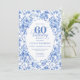 Invitación Chic Royal Blue Toile Roses 60th Birthday Invite