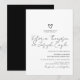 Invitación Chic Script Corazón Inclinado Negro Blanco Boda