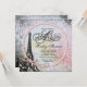 Hermosa invitación de baby shower de París con perlas rosadas, encaje y Torre Eiffel. Esta elegante invitación vintage de baby shower de París se personaliza fácilmente para su evento.