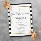 Invitación Chic de rayas negras y blancas para la Primera Comunión con un elegante borde de lámina de oro falso que enmarca tus detalles en tipografía chic con una simple cruz de oro. Diseñado por Thisisnotme©