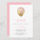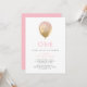 Invitación a una fiesta de cumpleaños de chica rosa y oro con un globo de oro y rosa purpurinoso. El diseño es minimalista y elegante, perfecto para tu niñita. La invitación puede ser personalizada con el nombre de tu pequeña niña y los detalles del fiesta. El diseño se basa en un primer cumpleaños, aunque se puede editar para incluir cualquier edad.