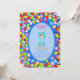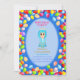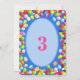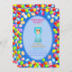 Hermosa princesa chica de tercer cumpleaños con globos multicolores en la invitación azul cielo. Textos y números listos para ser personalizados para otras edades!