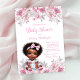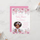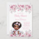 Celebre la próxima llegada con nuestra adorable invitación a una ducha de bebé, que incluye una adorable bebé afroamericana. Tiene un dulce y una expresión, y está vestida con un vestido rosa y blanco bonito con un arco de pelo a juego y zapatos en un fondo floral de color acuarela bonito. Perfectamente diseñado para captar la esencia de una ocasión alegre, esta invitación es ideal para cualquier chica de ducha de bebé. Personalizar con facilidad y hacer su día especial aún más memorable. Simplemente agregue los detalles del evento en el estilo de fuente, la redacción y el color de fuente de su elección. También puede cambiar el color de fondo en la parte posterior.