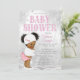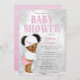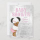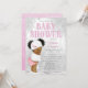 Invitación a la ducha de bebé en el chica de invierno maravillosa tierra con adorable bebé africana con pelo de moño afro vestido con un lindo vestido rosa de invierno en un hermoso fondo de copo de nieve de la maravillosa tierra del invierno. Esta tierna invitación a la ducha para bebés es fácil de personalizar para tu evento simplemente añadiendo los detalles de tu evento.