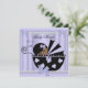 Afroamericano Cute Baby Shower Baby Girl Purple Lilac Black Print Pram Pearl Lace Pearl Lace Bow Ribbon invitación, recién nacido, niña