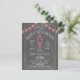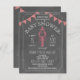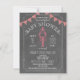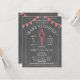 Una invitación de la fiesta de bienvenida al bebé de la ebullición del país bajo que ofrece un ilustracion de una langosta que sostiene un pacificador. Guinga roja que golpea en la parte superior. El fondo es pizarra inspirada.