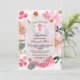 Invitación Chica Bautismo Acuarela Floral Rosa