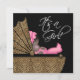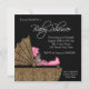 Adorable carruaje de bebé leopardo con hermosa bebé afroamericana que lleva un lindo traje rosa y una diadema. Esta linda invitación de cumpleaños de bebé leopardo negra, blanca y rosa se personaliza fácilmente para su evento agregando los detalles del evento, el estilo de fuente, el tamaño y el color de la letra y la redacción.