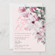 Este es un hermoso diseño floral de acuarela con dulces flores de magnolia rosadas y caligrafía manuscrita para una invitación de cumpleaños de bebé romántica y moderna.