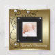 Fotografía de oro blanco negro niño bebé o chica invitación a bautizar. Añada sus detalles al frente y al reverso agregando los detalles del evento, el estilo de fuente, el tamaño y el color del tipo de letra y la redacción.