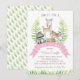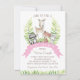 Invitaciones de baby shower de niña de bosque con animales del bosque adorables en un fondo de vegetación rústica. Esta invitación de animales del bosque tiene un bebé ciervo, zorro, mapache y conejo. Esta invitación de baby shower de niña se personaliza fácilmente agregando los detalles de su evento. También puede cambiar el color de fondo en esta adorable invitación de baby shower de bosque.